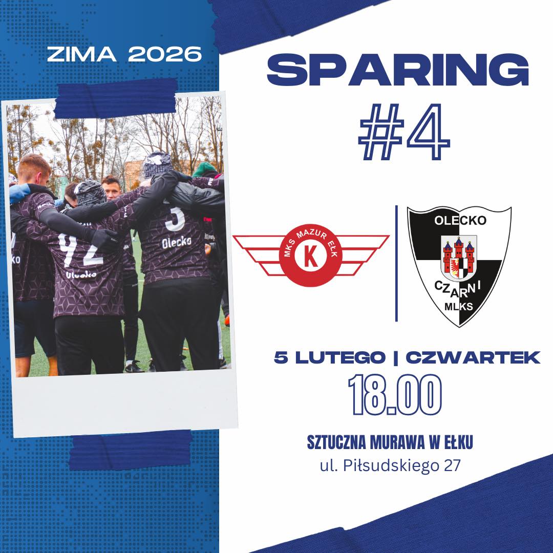 🗣️Przed nami czwarty mecz sparingowy w okresie przygotowawczym do rundy wiosennej. W kolejnym etapie budowania formy nasz zespół uda się do Ełku, gdzie zmierzymy się z miejscowym Mazurem Ełk.