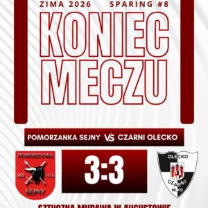 𝐑𝐄𝐌𝐈𝐒 𝐙 𝐒𝐄𝐉𝐍𝐀𝐌𝐈 W ostatnim sparingu przed rozpoczęciem rundy wiosennej Czarni Olecko zremisowali na wyjeździe w Augustowie z Pomorzanka Sejny 3:3. Spotkanie było wartościowym sprawdzianem formy tuż przed ligowymi rozgrywkami […]