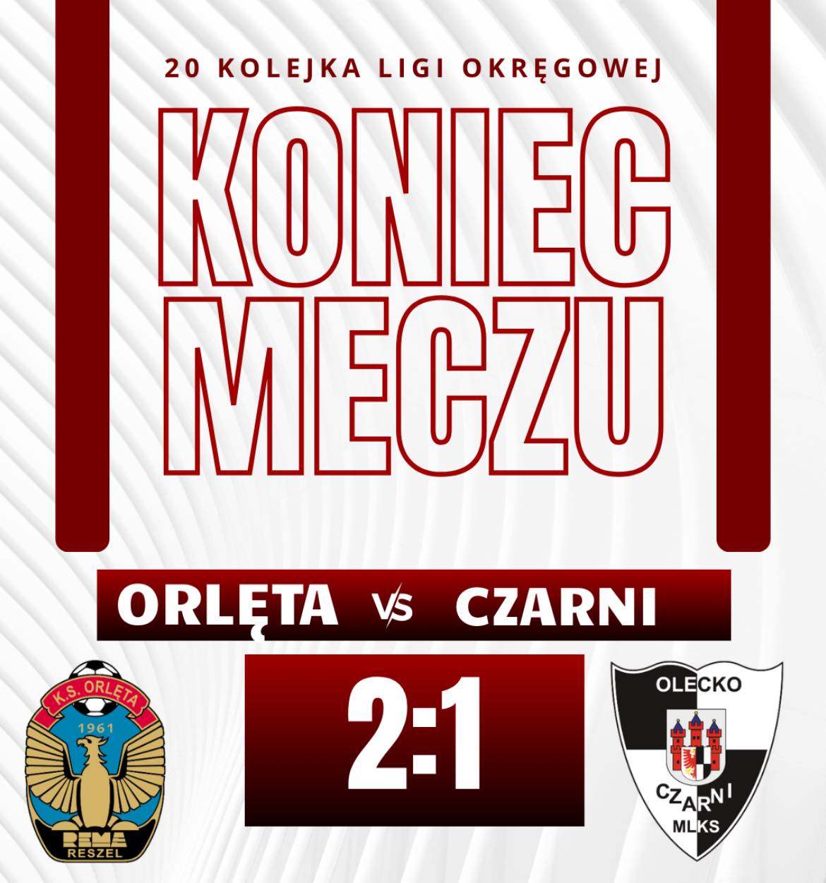 Kolejny mecz rozegramy z Olimpia Olsztynek w sobotę 11 kwietnia o godzinie 16.00 na Stadionie Miejskim w Olecku.